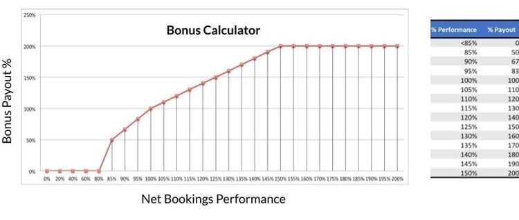 Bonuses should be tied to net bookings, as already mentioned, but to incentivize good stewardship of your company’s capital, you need a “check and balance” on how much money you spend pursuing the planned growth. To discourage your team from overspending, consider creating a guard rail.
