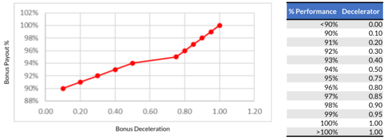 Here’s an example of how spending deceleration and bonus payout can be implemented: