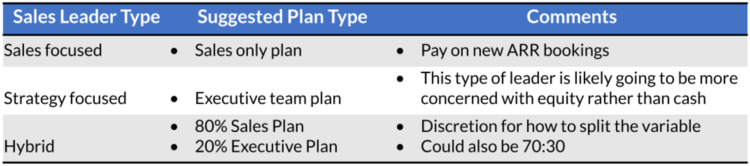 Once you’ve determined what type of sales leader you have, then use this table as a guide to determining their variable compensation: